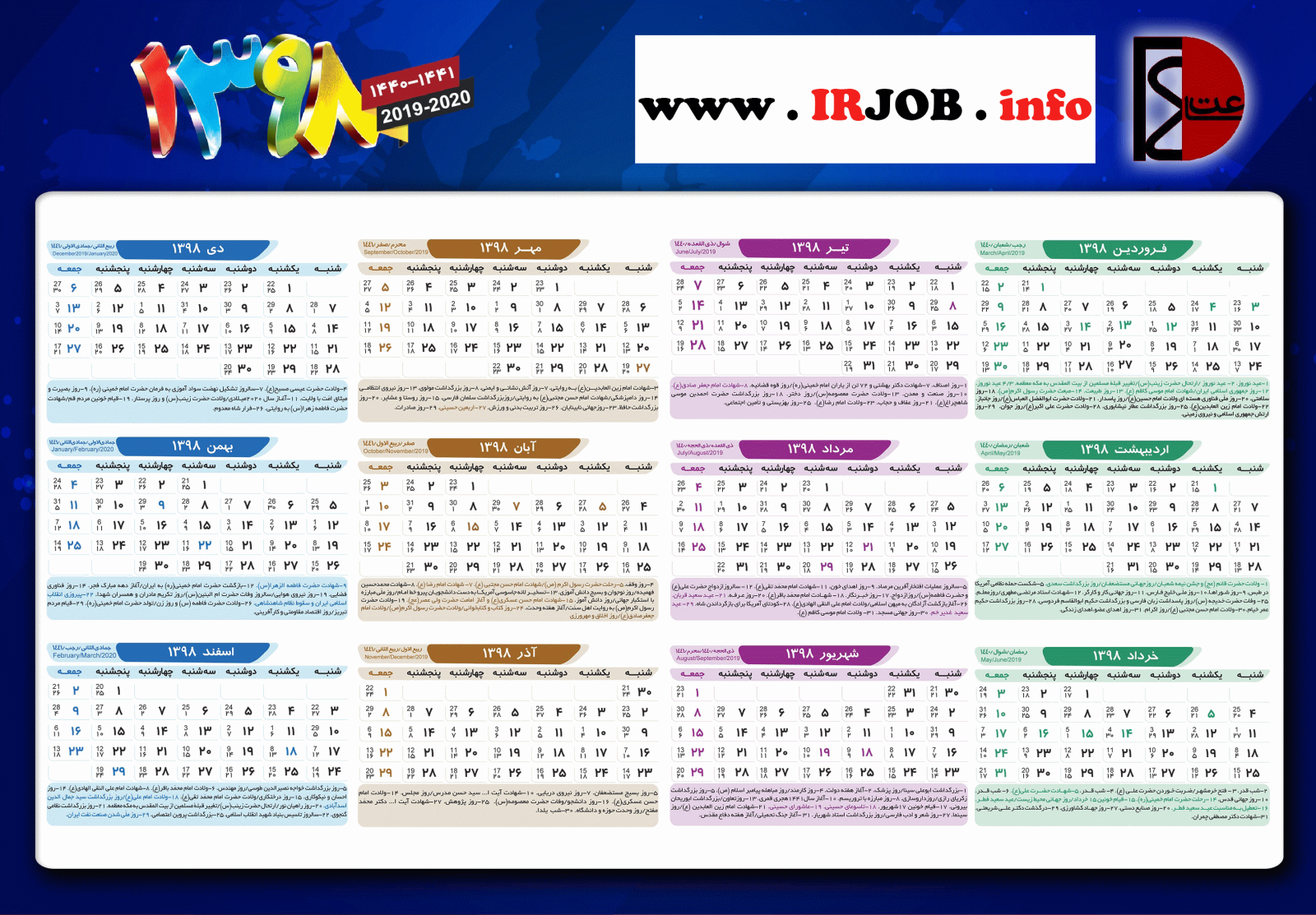 تقویم رسمی و کامل سال 1398 شمسی را در زیر ببینید