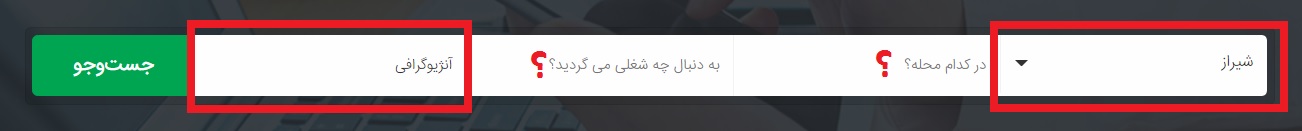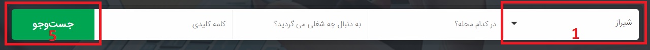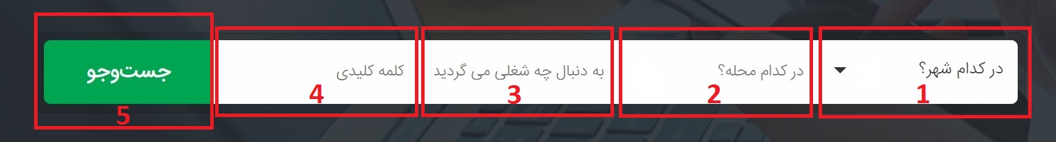 در این بخش نوار جستجو متشکل از پنج بخش می باشد :