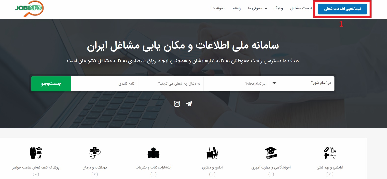 ج . در بخش سوم شما وارد قسمت ثبت اطلاعات شغلی می شوید که باید تمامی فیلد های خواسته شده را با دقت ، پر کنید تا بهترین نتیجه را کسب کنید . نحوه ثبت اطلاعات شغلی در مباحث بعدی مفصل تشریح خواهد شد. بخش چهارم دیدن آخرین مشاغل ثبت شده و بدون در نظر گرفتن صنف خاصی ، در کل کشور است که به دسته های 10 تایی تقسیم شده و برای دیدن 10 مورد بعدی باید دکمه صفحه بعد رو فشار بدهید. به این صفحه آنچنان نیاز پیدا نخواهید کرد.