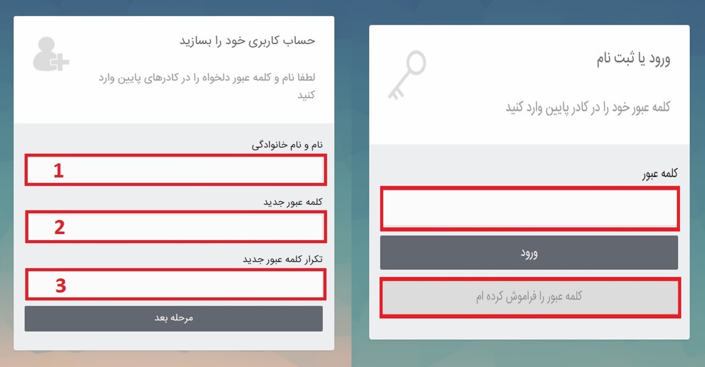 سپس فیلد های مربوطه را پر نمایید تا حساب کاربری شما فعال گردد. برای دفعات بعد باید پس از ورود شماره موبایل خود ، کلمه عبور شخصی خود را وارد کنید و چنانچه آن را فراموش کرده اید ، روی دکمه کلمه عبور را فراموش کرده ام فشار دهید تا پیامکی به شماره موبایلی که در هنگام عضویت وارد کرده اید ، ارسال شود. در صورت عدم ارسال کد ، به پشتیبانی تماس بگیرید تا فورا مشکل شما را برطرف نمایند.