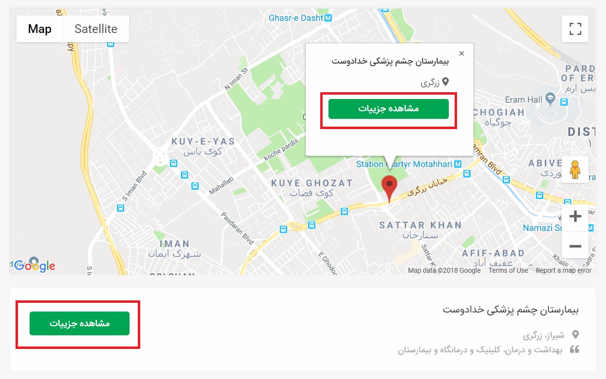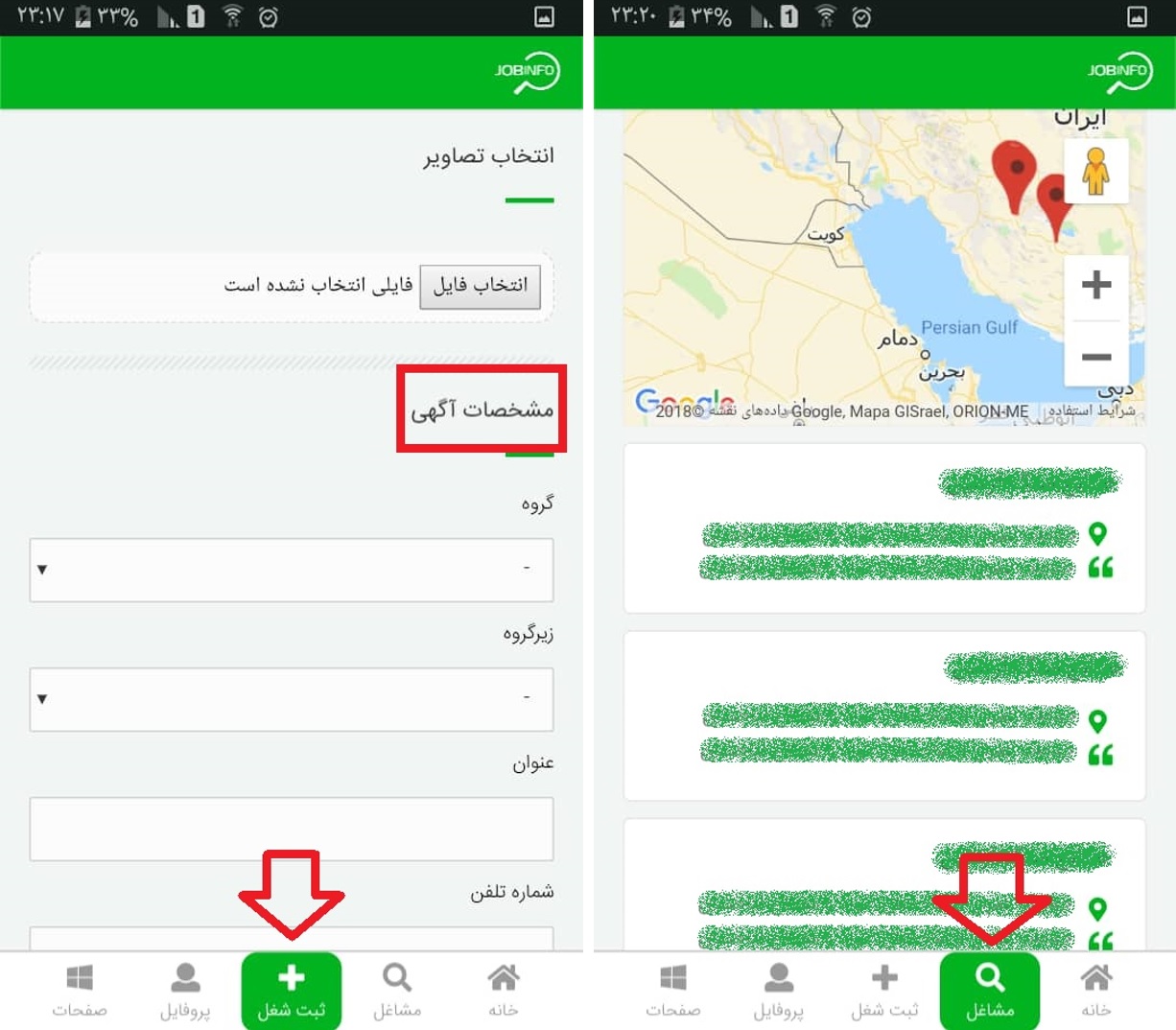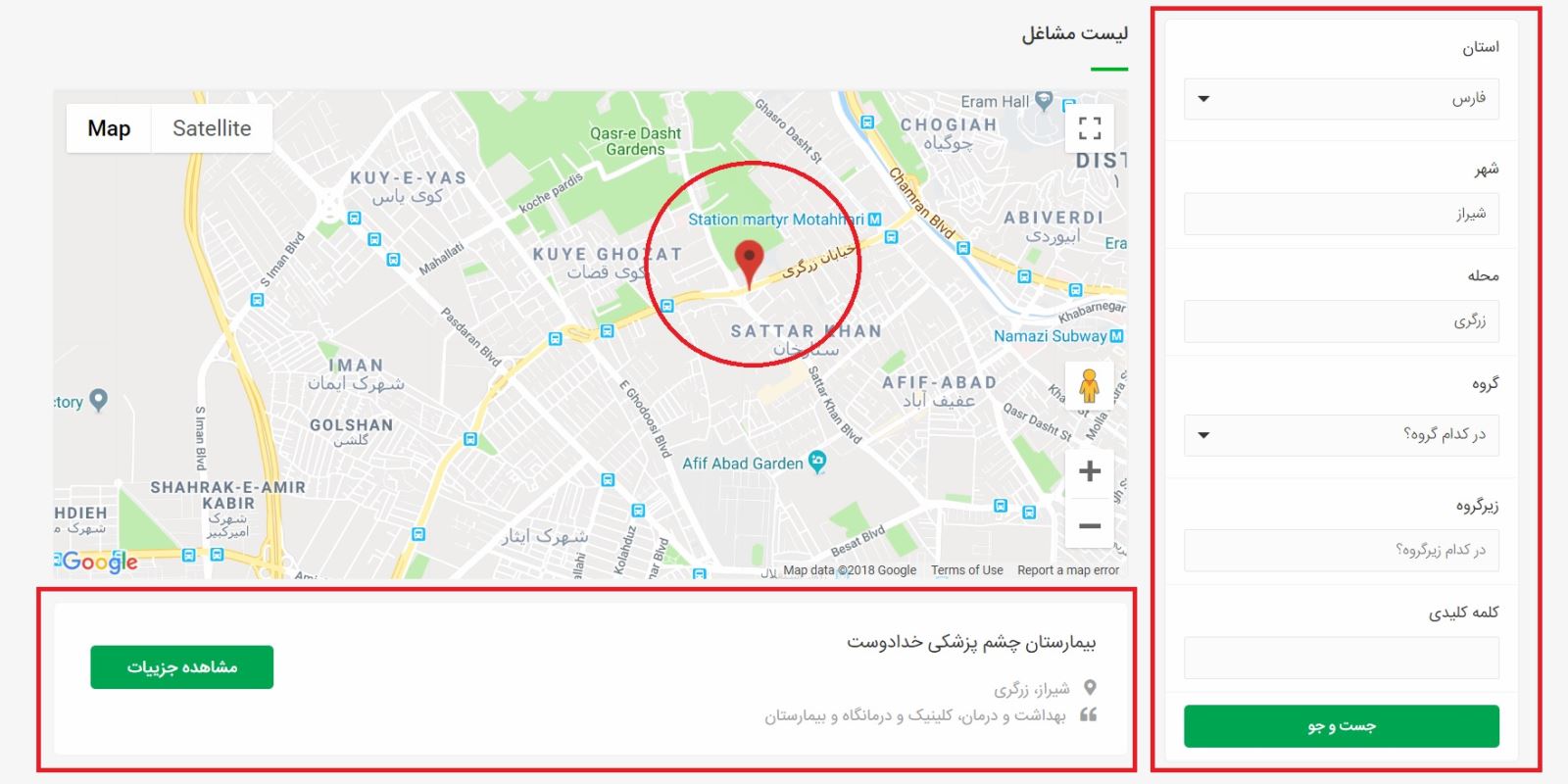 با کلیک روی نقطه موقعیت مشخص شده و همچنین کادر پایین می توان وارد جزئیات هر شغل شد.