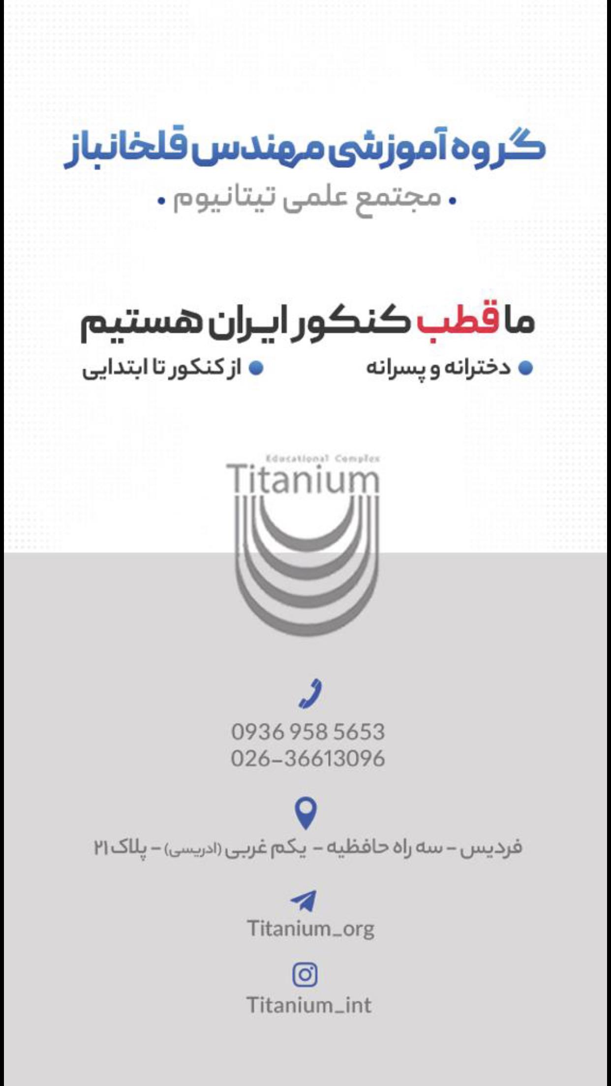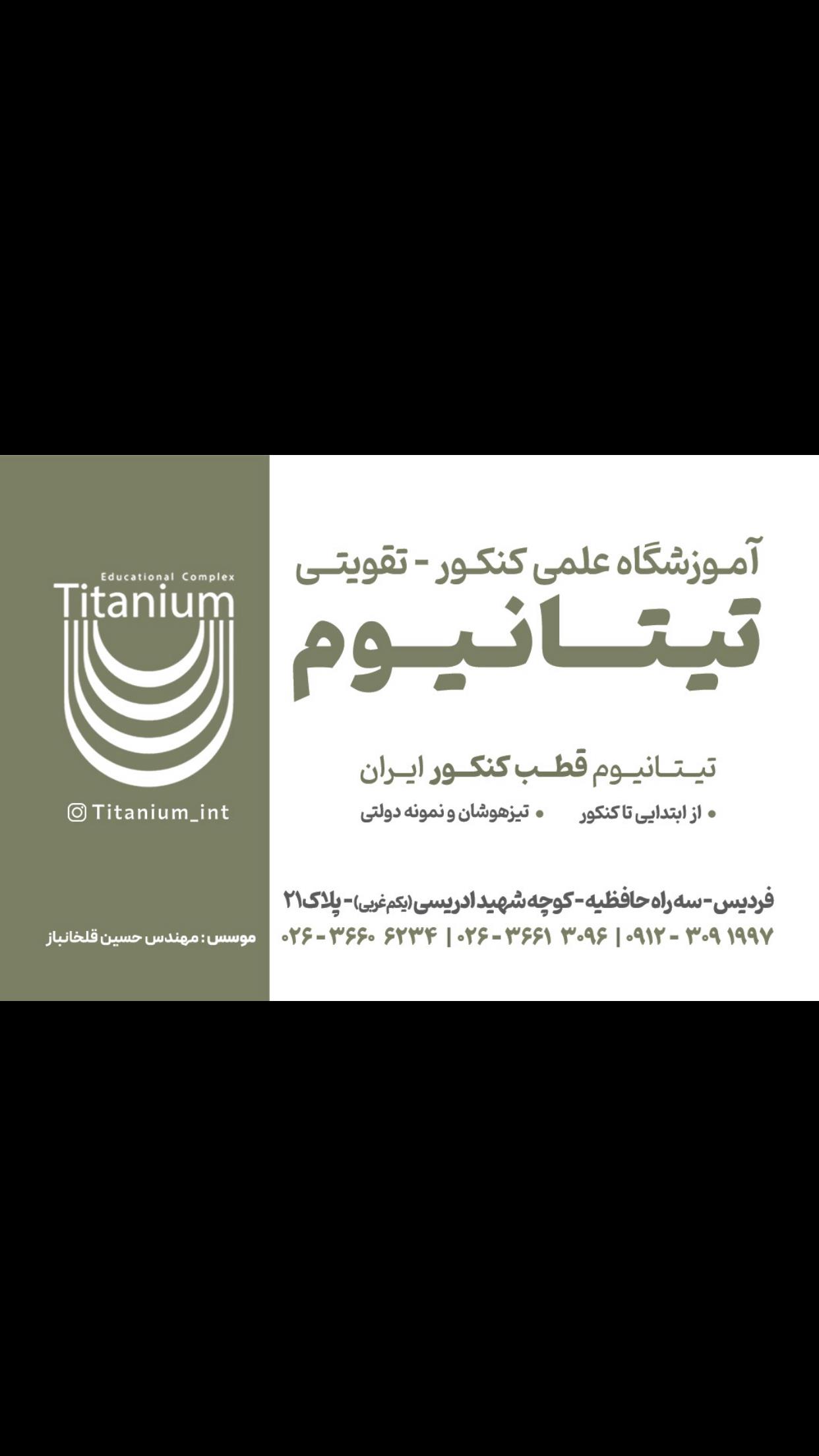 طبق نظرسنجی انجام شده درسال ۱۴۰۱ ازدانش آموزان شهرفردیس،آموزشگاه تیتانیوم برترین موسسه کنکوری شهرستان فردیس انتخاب شده است.