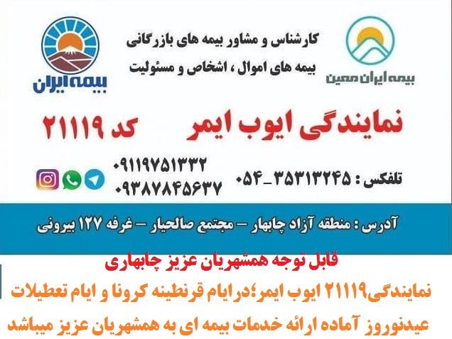 بیمه ایران - نمایندگی 21119 ایوب ایمر چابهار